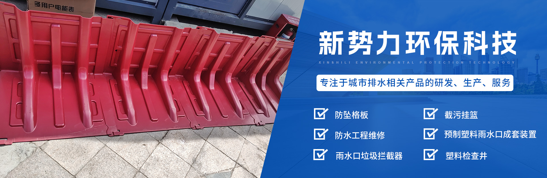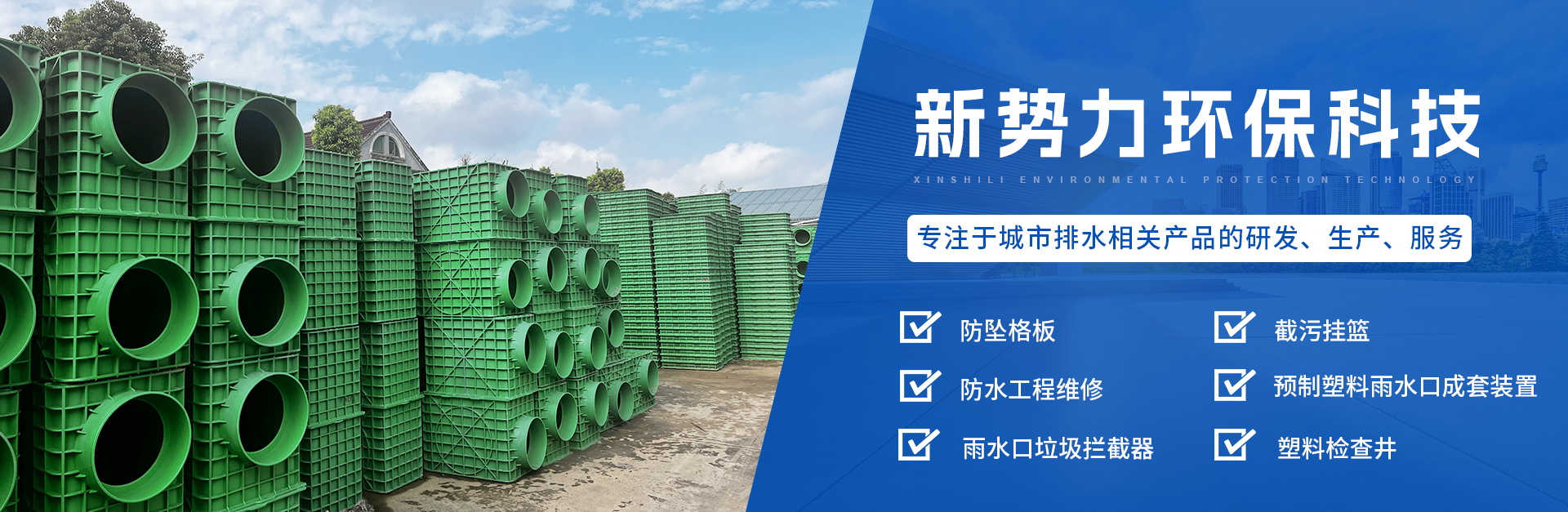 上海新势力环保科技有限公司,专注于城市排水相关产品的研发、生产、服务。产品包括:悬挂式防坠落格板、雨水口截污挂篮、预制塑料雨水口成套装置、塑料检查井全系列产品,楼宇智能雨污分流器,组合式防汛挡板。守护城市“脚下安全”,控源截污。公司使命:服务于城市排水,让城市排水更安全,更畅通。